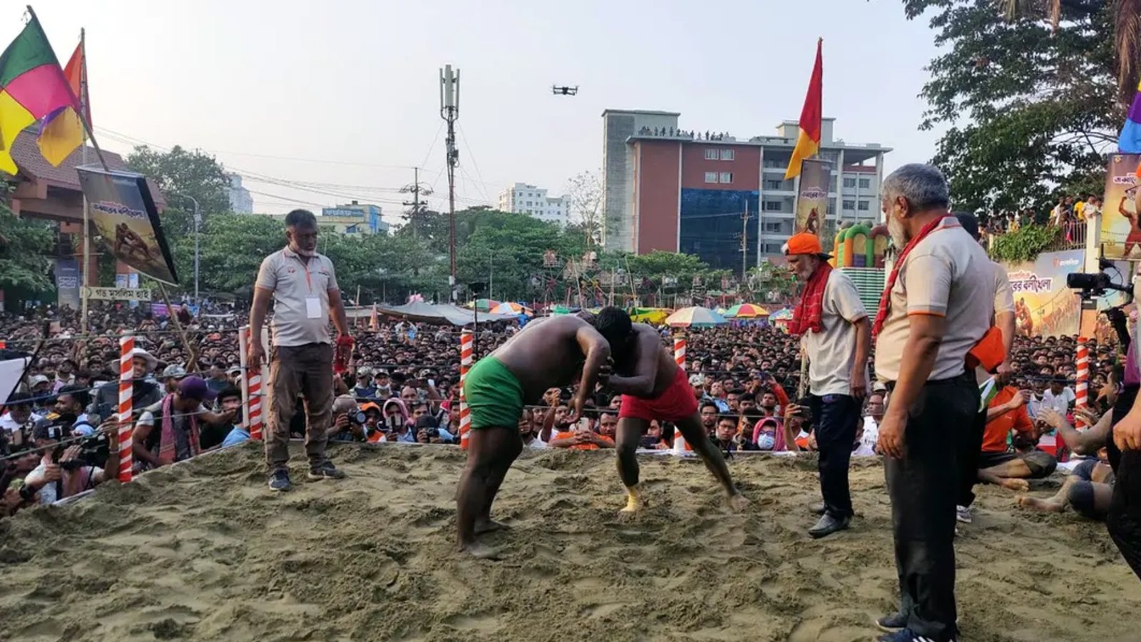 শনিবার বিকেলে ঐতিহাসিক লালদীঘি মাঠে শুরু হওয়া এই মূল প্রতিযোগিতায় দেশের বিভিন্ন অঞ্চল থেকে প্রায় ১০৮ জন বলী বা কুস্তিগির অংশ নেন। প্রতিটি লড়াই ছিল টানটান উত্তেজনায় ভরপুর। একের পর এক শক্ত প্রতিদ্বন্দ্বিতা পেরিয়ে শেষ পর্যন্ত ফাইনালে জায়গা করে নেন বাঘা শরীফ ও রাশেদ বলী। ফাইনাল ঘিরে উপস্থিত হাজারো দর্শকের মধ্যে উত্তেজনা ছিল তুঙ্গে। সবার মনেই প্রশ্ন ছিল—অভিজ্ঞতায় এগিয়ে থাকা বাঘা শরীফ কি শিরোপা ধরে রাখবেন, নাকি গতবারের হার শোধ করে চ্যাম্পিয়ন হবেন রাশেদ বলী? তবে দীর্ঘ ৩০ মিনিটের হাড্ডাহাড্ডি লড়াই শেষে গতবারের মতোই চ্যাম্পিয়নের মুকুট নিজের কাছে ধরে রাখেন বাঘা শরীফ।