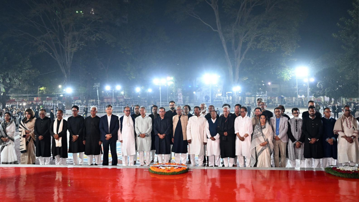 ঢাকা: মহান শহীদ দিবস ও আন্তর্জাতিক মাতৃভাষা দিবসের প্রথম প্রহরে (শনিবার, ২১ ফেব্রুয়ারি) কেন্দ্রীয় শহীদ মিনারে পুষ্পস্তবক অর্পণের মাধ্যমে বায়ান্নর ভাষা শহীদদের প্রতি গভীর শ্রদ্ধা নিবেদন করেছেন মন্ত্রিপরিষদের সদস্যরা। এই শ্রদ্ধা নিবেদন পর্বে নেতৃত্ব দেন প্রধানমন্ত্রী তারেক রহমান।