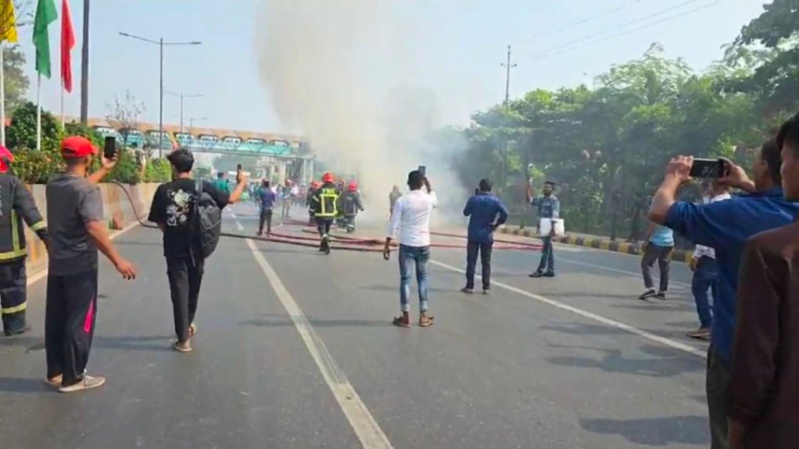 ক্যান্টনমেন্ট থানার ভারপ্রাপ্ত কর্মকর্তা (ওসি) আলমগীর জাহান জানান, উত্তরার দিকে যাওয়ার সময় একটি প্রাইভেটকারের ইঞ্জিন থেকে ধোঁয়া বের হতে দেখা যায়। ধোঁয়া দেখামাত্রই গাড়ির মালিক বুদ্ধি করে গাড়িটি রাস্তার পাশে সাইড করে দ্রুত নেমে পড়েন। সেখানে পুলিশও উপস্থিত ছিল। খবর পেয়ে ফায়ার সার্ভিস এসে আগুন নিয়ন্ত্রণে আনে।
