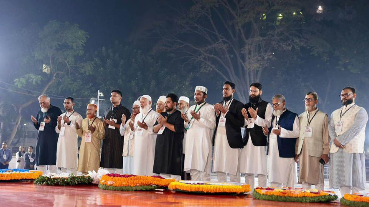ঢাকা: দেশের ইতিহাসে প্রথমবারের মতো কেন্দ্রীয় শহীদ মিনারে পুষ্পস্তবক অর্পণের মাধ্যমে বায়ান্নর ভাষা শহীদদের প্রতি বিনম্র শ্রদ্ধা জানিয়েছেন বাংলাদেশ জামায়াতে ইসলামীর আমির ও জাতীয় সংসদের বিরোধীদলীয় নেতা ডা. শফিকুর রহমান। একুশের প্রথম প্রহরে শহীদ বেদিতে ফুল দিয়েই তিনি শহীদদের আত্মার মাগফিরাত কামনায় মোনাজাত করেন।