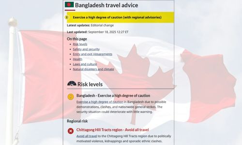 ঢাকা: বাংলাদেশ ভ্রমণে নিজ দেশের নাগরিকদের সতর্ক করেছে কানাডার সরকার।