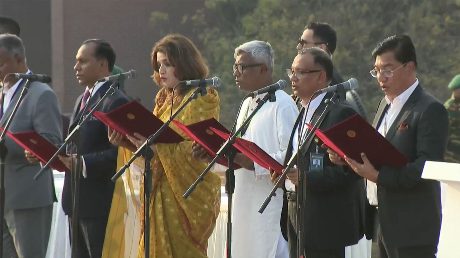 শপথ নিলেন যারা: বিএনপির জনপ্রিয় তরুণ নেতা ইশরাক হোসেন, তাবিথ আউয়াল (তালিকায় নাম না থাকলেও আলোচনায় ছিলেন, তবে প্রম্পটে ইশরাক আছেন), শামা ওবায়েদ এবং অনিন্দ্য ইসলাম অমিতের পাশাপাশি মন্ত্রিসভায় জায়গা করে নিয়েছেন গণঅধিকার পরিষদের নুরুল হক নুর (ভিপি নুর), গণসংহতি আন্দোলনের জোনায়েদ সাকি এবং এনডিএম-এর ববি হাজ্জাজ।